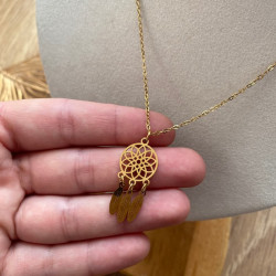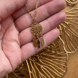 Collier attrape-rêves en acier inoxydable doré. Léger, élégant et résistant à l’eau. Parfait pour un style bohème chic au quotidien.