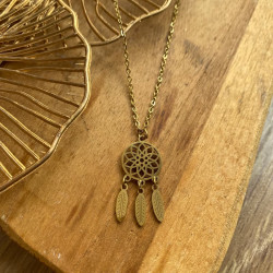 Ce collier délicat représente un attrape-rêves finement découpé, symbole de protection et de légèreté. Ses petites plumes mobiles apportent une touche bohème et élégante. Parfait pour sublimer vos tenues, seul ou en accumulation.