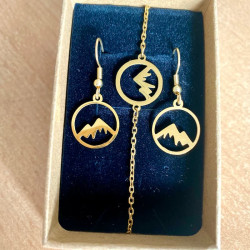 Ensemble bracelet + boucles d’oreilles en acier inoxydable doré inspiré des montagnes. Élégant, léger et résistant à l’eau. 32€ au lieu de 36€.